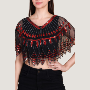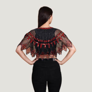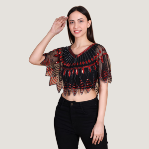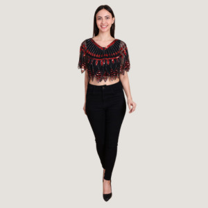 Whether paired with high-waisted jeans, sleek skirts, or palazzos, the SCARLET SPARK SEQUIN SHEER CROP TOP instantly elevates your outfit. The timeless black base and vibrant red detailing make it versatile enough for both Western and fusion looks. Add minimal accessories and a bold lip color to complete your perfect party ensemble.