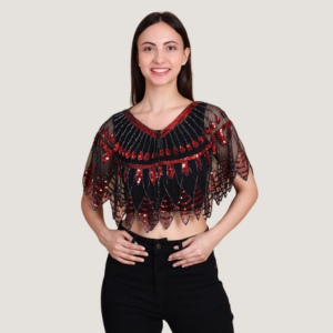 Make a confident and glamorous impression with the SCARLET SPARK SEQUIN SHEER CROP TOP, a chic blend of style and sophistication. Crafted from lightweight sheer mesh fabric, this crop top features intricate sequin embroidery in radiant shades of red and black — creating a captivating shimmer that stands out effortlessly.